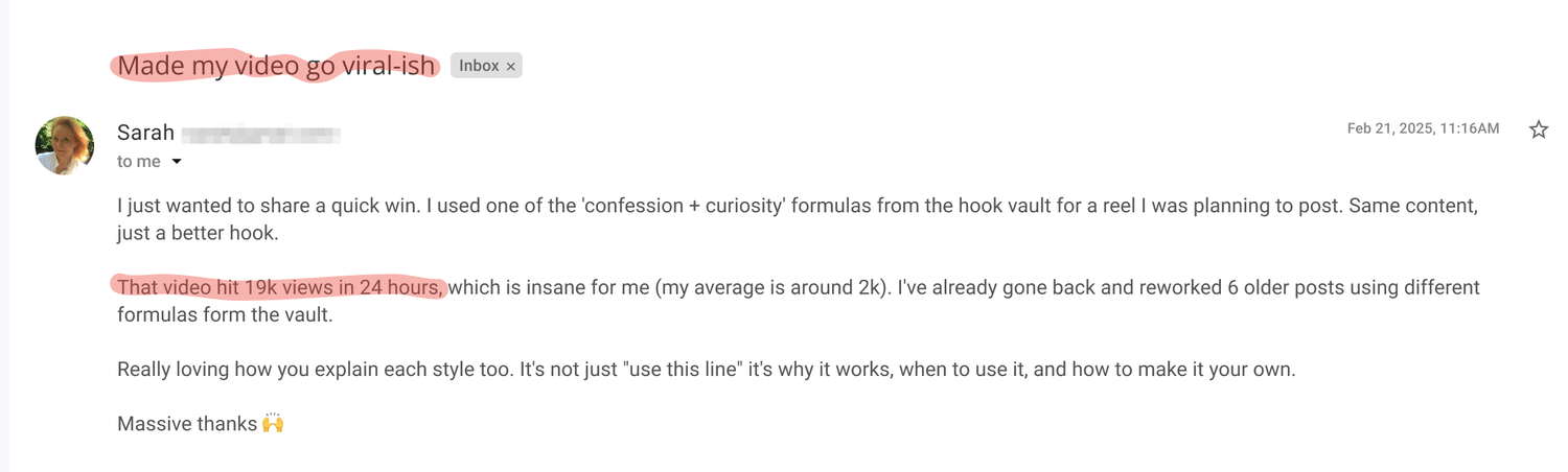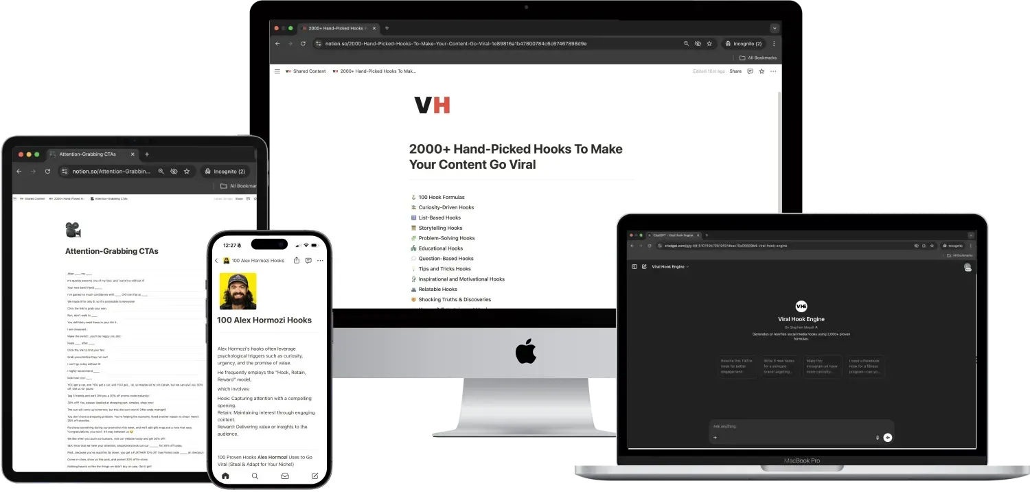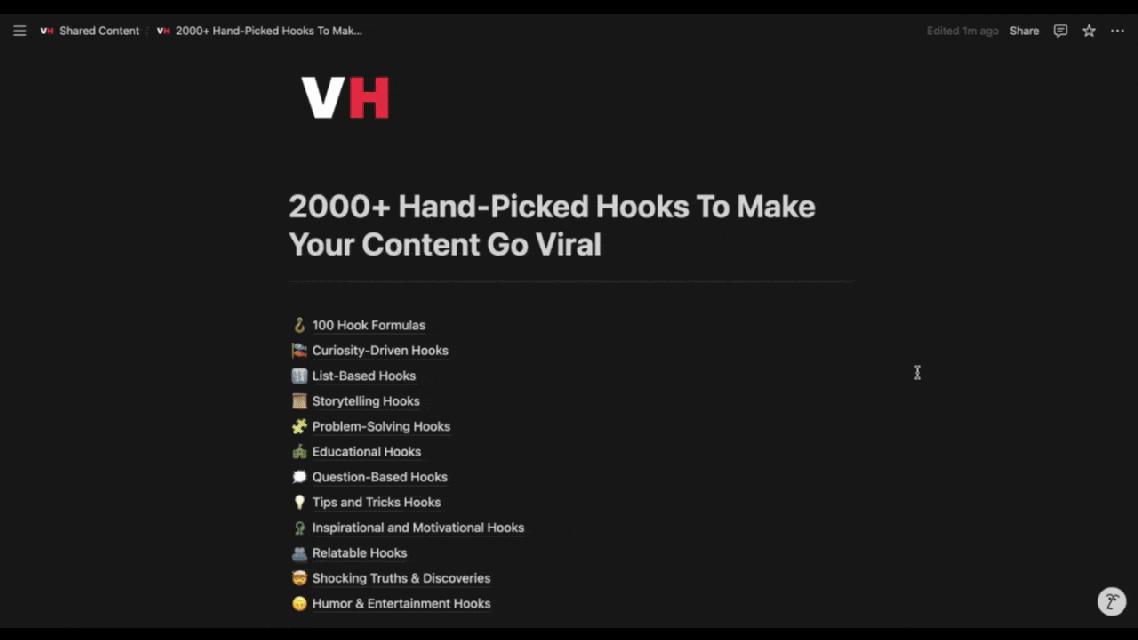 Before you go, get a sample from the Viral Hook Vault: 20 proven hooks pulled from real content... 2 from each category.